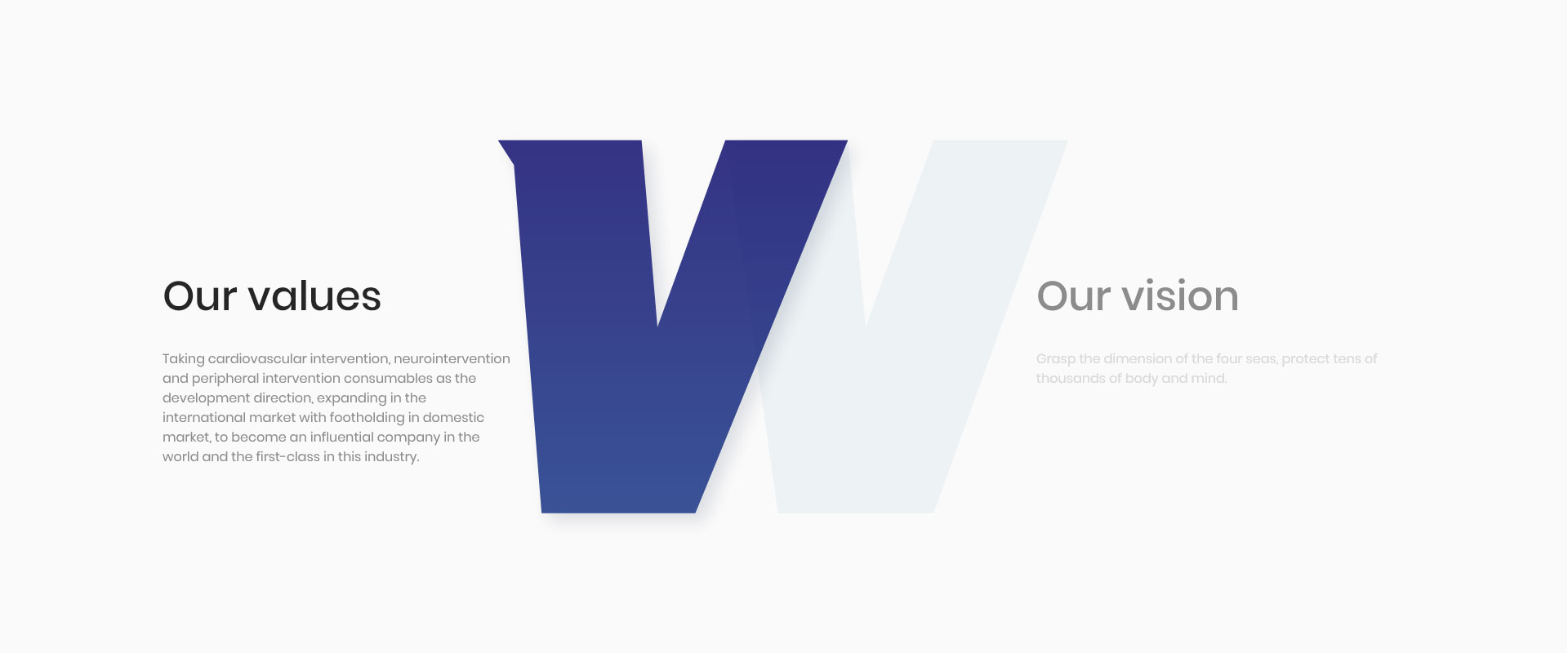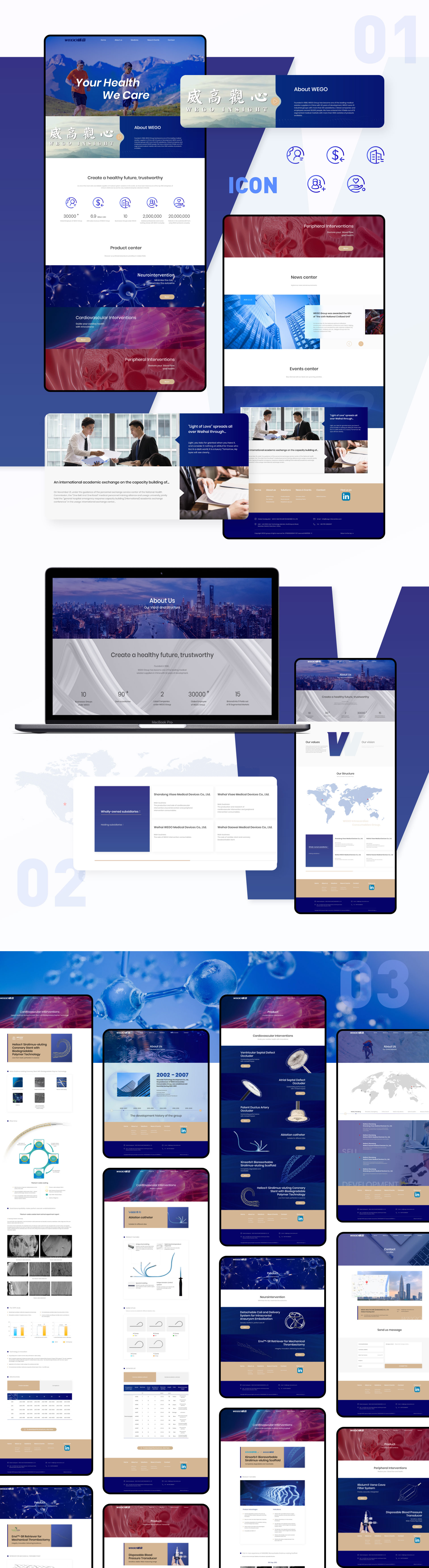 “秉四海之维,护万家之心”是威高集团的企业使命,我们的设计也是围绕此理(lǐ)念展开的。首页(yè)及内页(yè)的设计采用(yòng)蓝金色配色的方案,拉近人与医(yī)疗之间的距离感,在人文(wén)关怀和科(kē)技(jì )感之间取得平衡感。