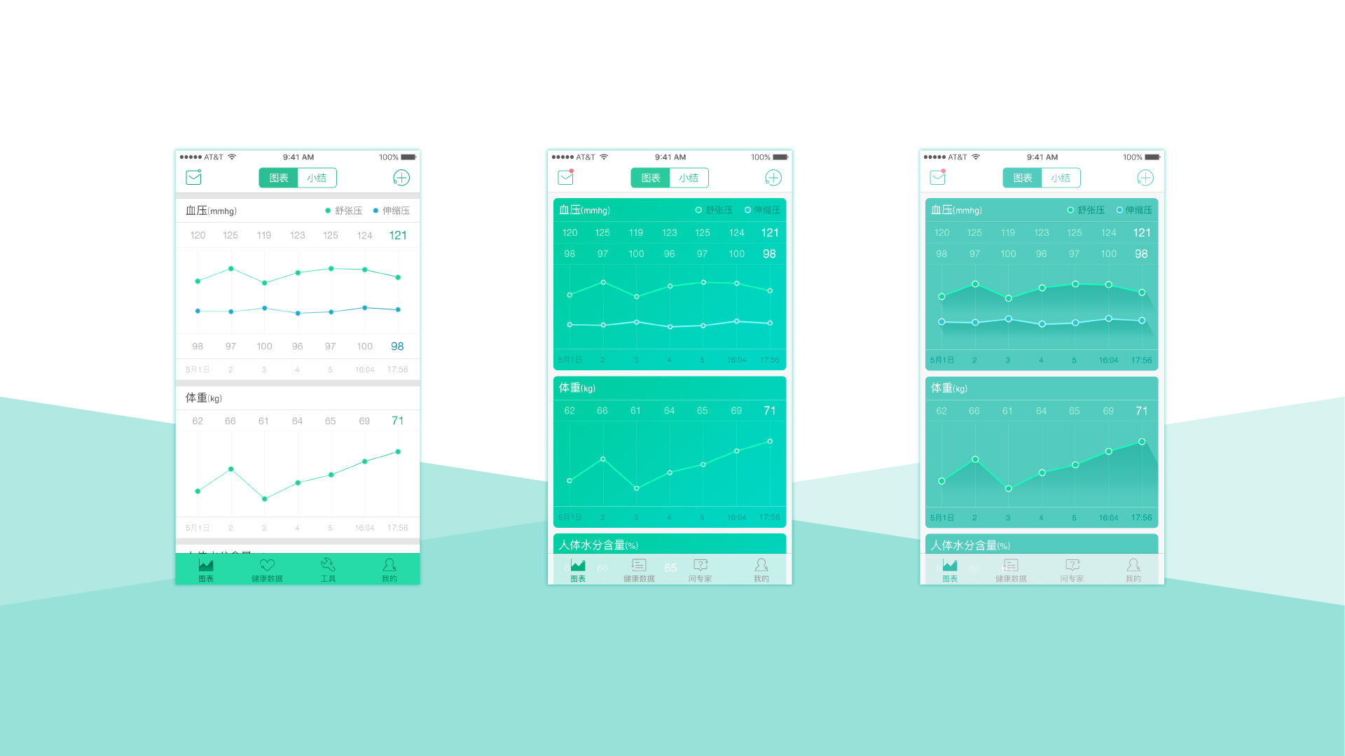 设计坚持极简主义,绿和蓝色的配搭和大量留白,让用(yòng)户感受到舒适、简洁的视觉體(tǐ)验,而信息在视觉上对比较强,用(yòng)户能(néng)清晰查看相关信息内容。中(zhōng)老年人是比较特殊的个體(tǐ),视觉、视力等都有(yǒu)较特殊的感觉。大量的留白虽然简洁,但是纯白色在屏幕上显示会使他(tā)们一定的刺激眼睛造成不舒服。通过再一次调研研究,将留白的底色调整為(wèi)与白色接近的浅灰色,从而再次让用(yòng)户测试的时候,就更好地解决了这一细节性问题。达到我们希望用(yòng)户在使用(yòng)中(zhōng)达到舒适极致的视觉體(tǐ)验。在风格定稿的过程中(zhōng),我们会经过多(duō)次的风格设计尝试后,再与用(yòng)户、客户进行沟通,以求达到”三赢“的局面。