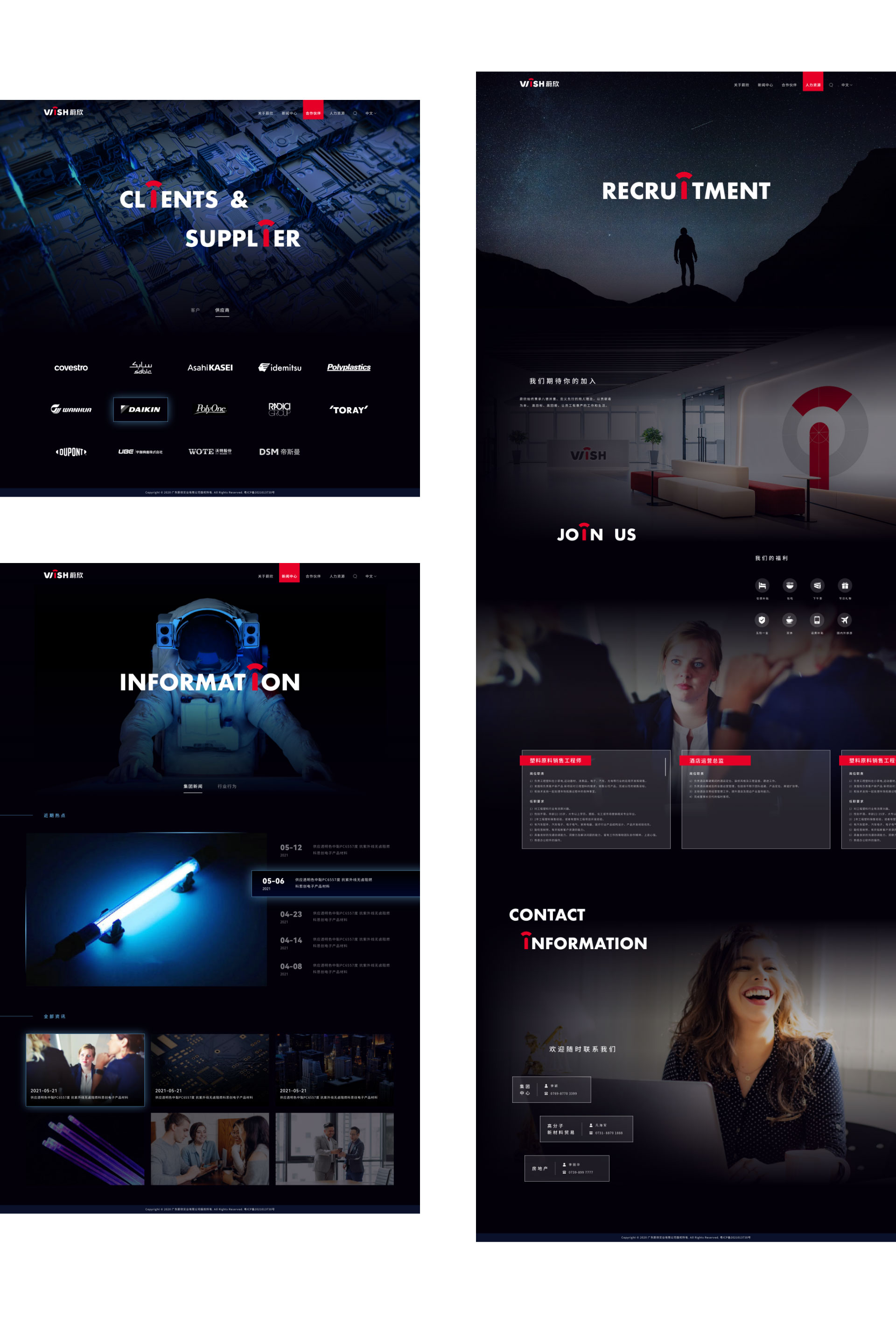 网站整體(tǐ)使用(yòng)暗色的设计,用(yòng)星空蓝色為(wèi)色彩的大背景,渲染集团的先进科(kē)技(jì )感氛围,且能(néng)更好地呈现网站的创意化设计,凸显企业的品牌化与个性化。