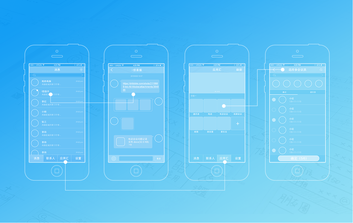 界面设计秉承着清新(xīn),商(shāng)務(wù)的风格,蓝色有(yǒu)理(lǐ)性、商(shāng)務(wù)的感觉,大面积的留白,少量的红色点缀提醒,使用(yòng)户在繁忙时使用(yòng)软件会有(yǒu)舒适轻松的感觉。